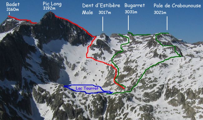 sous le pic de Bugarret (cette fois-ci flanc Nord) et plonger par