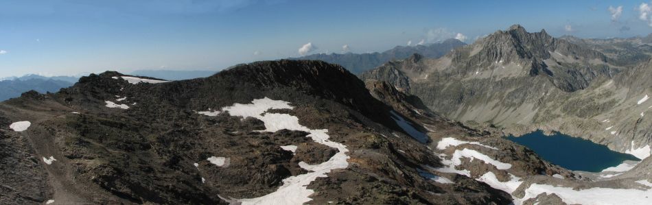 La Pale de Crabounouse 3021m depuis le Bugarret 3031m avec en contre bas le lac Tourrat dominé par le Néouvielle et le Ramoun