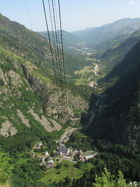 Après 350m de dénivelé, n'hésitez pas à prendre 15mn, pour aller découvrir les installations du téléphérique qui vous offriront une vue plongeante sur la vallée de Louron et le pont de Prat. Ce site semble bénéficier d'un micro climat qui favorise la flore (lis Martagon, oeillets de poète, Millepertuis, ...). |