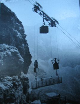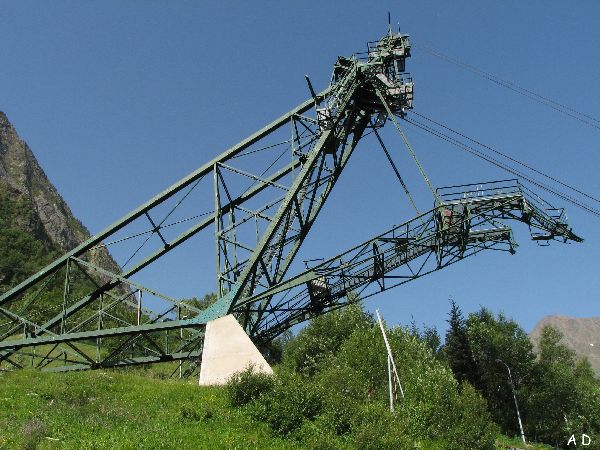 Les téléphériques furent construits au titre de dommage de guerre par les allemands en 1920. Le téléphérique N°1 fut conçu pour porter des éléments de conduite forcée de 12 tonnes, de s'arrêter à n'importe quel endroit lors de son déplacement avec sa charge et cela sans posséder de pylône intermédiaire. Des ingénieurs viennent aujourd'hui encore étudier cette construction tout à fait remarquable.. |