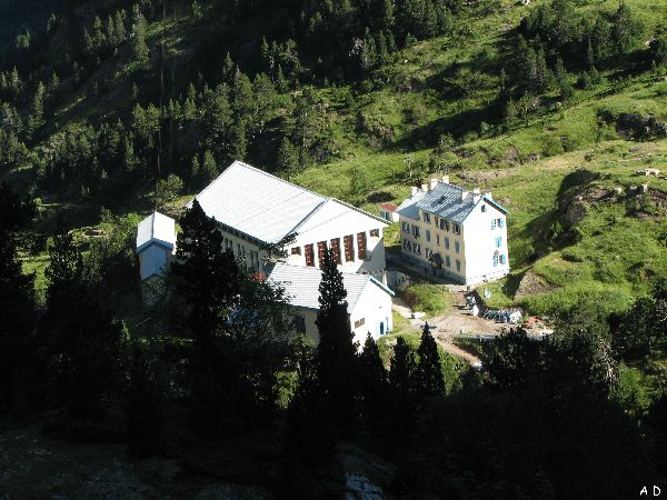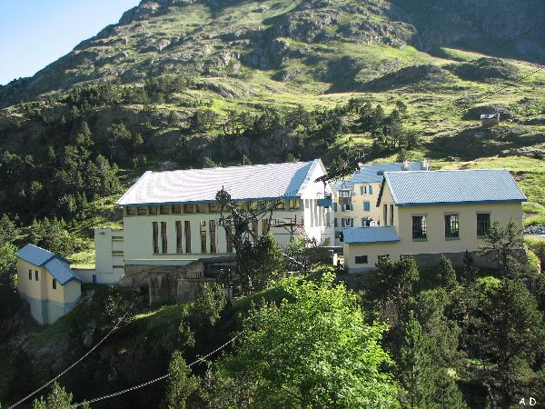Dans cet ensemble de bâtiments se trouvent la centrale électrique alimentée par une conduite forcée alimentée par le lac de Caillauas 2158m et de Pouchergues 2111m, et le refuge de la Soula 1690m ancien bâtiment qui abritait les ouvriers (A droite sur la photo ci-dessous). L'eau de la centrale de la Soula 1690m est transférée par une galerie à la centrale de Tramezaïgues 1230m qui donne naissance à la Neste de Louron qui alimente le canal de la Neste irrigant les plaines du Gers. |