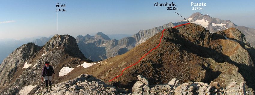 crête du port de Gias au pic SE de Clarabide 3012m est gravie en 20mn,
