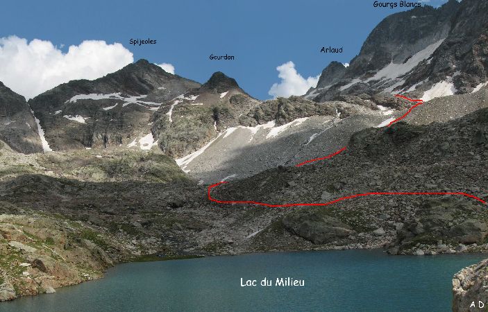 Spijeoles, Gourdon, col et pic des Gourgs Blancs avec la pointe Arlaud. |