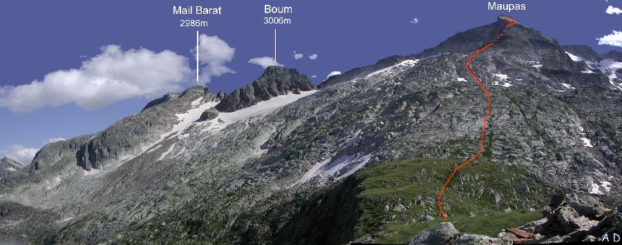 Je monte au dessus du lac, sur la crête, pour repérer le parcours de demain. Mail Barat, Boum, Maupas. (Cliquer sur la photo pour retirer la légende)