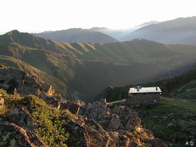 Après une nuit de repos au refuge du Maupas, la mer de nuage s'est évaporée. En face, la crête Céciré-Superbagnères.