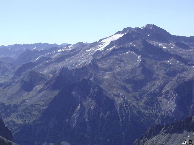 Depuis le Maupas, à l'Est, le massif de la Maladeta, Aneto. (Cliquer sur la photo pour zoomer)
