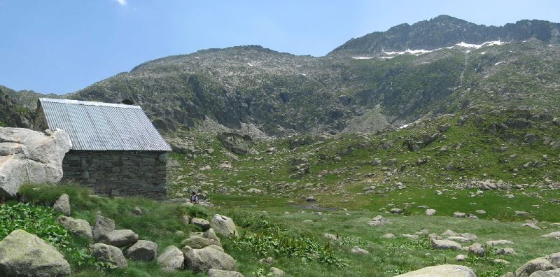 La cabane de Turguilla 2000m avec le pic de Turguilla 2527m et la pointe de Rabassère 2568m