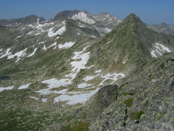 Au fond, les grands de l'Ariège (Montcalm, pica d'Estats, Sotllo) (cliquez sur la photo pour afficher la légende)