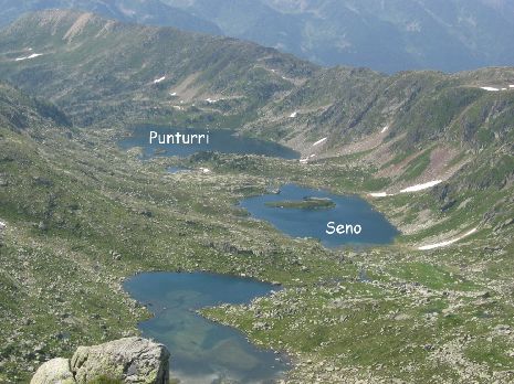 Vue sur le vallon de Romedo (Espagne) avec les lacs de Punturri et de Seno.