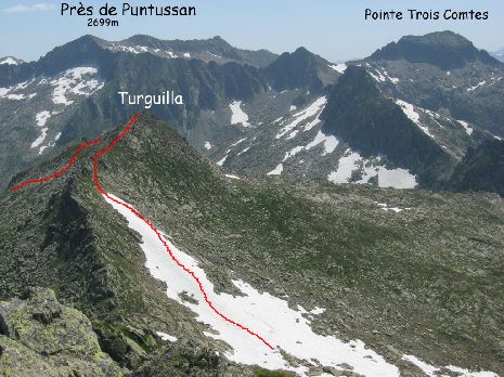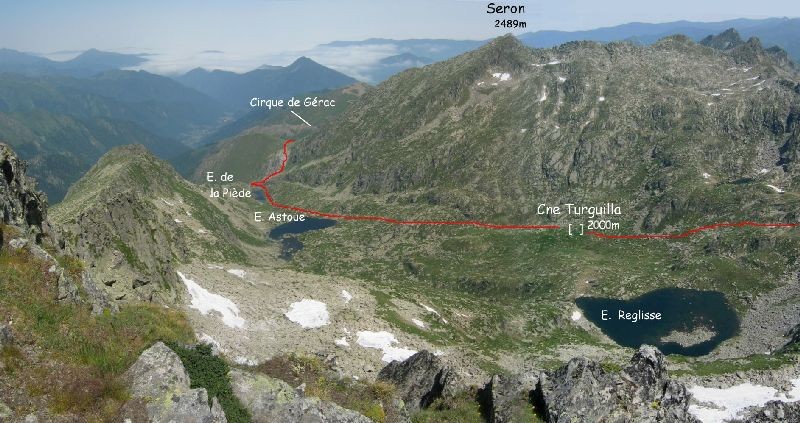 Ainsi que la vue plongeante sur le vallon de Turguilla et le pic Séron 2489m