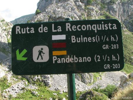 Le panneau placé sur le chemin du défilé de Cares nous indique la direction à prendre.
