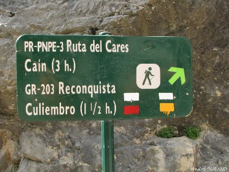 Signalétique au croisement avec le chemin principal du défilé de Cares