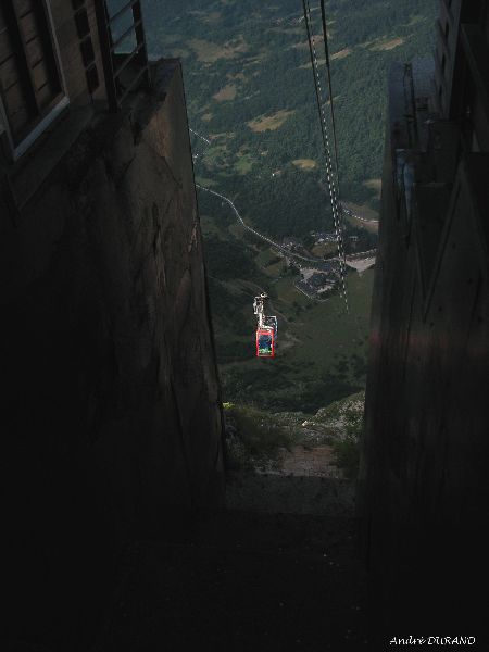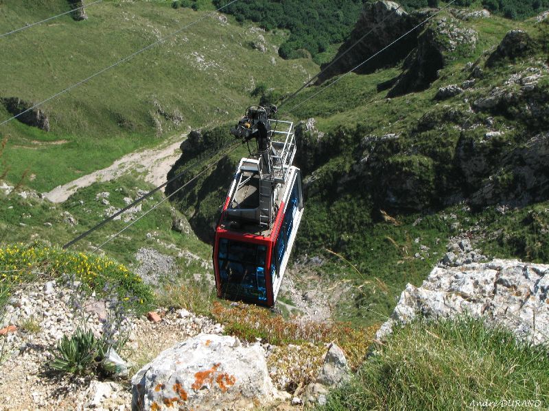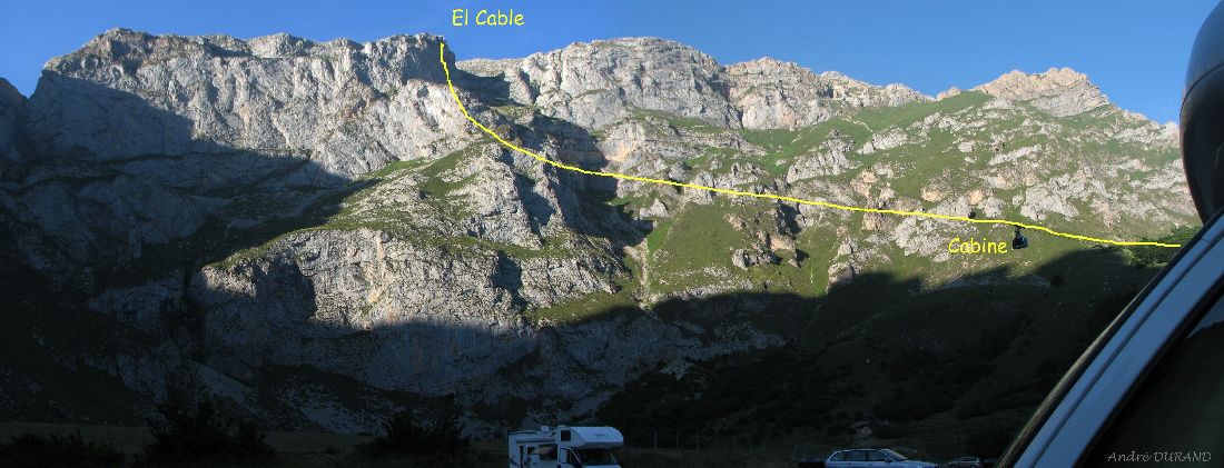Depuis le CC (camping car) au parking , les parois de 700m du cirque de Fuente Dé nous dominent.