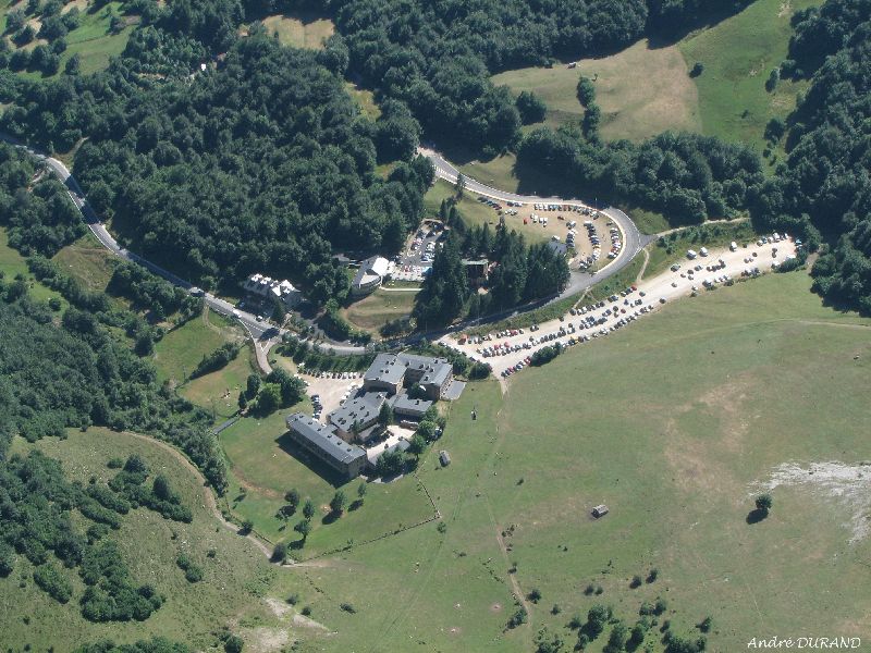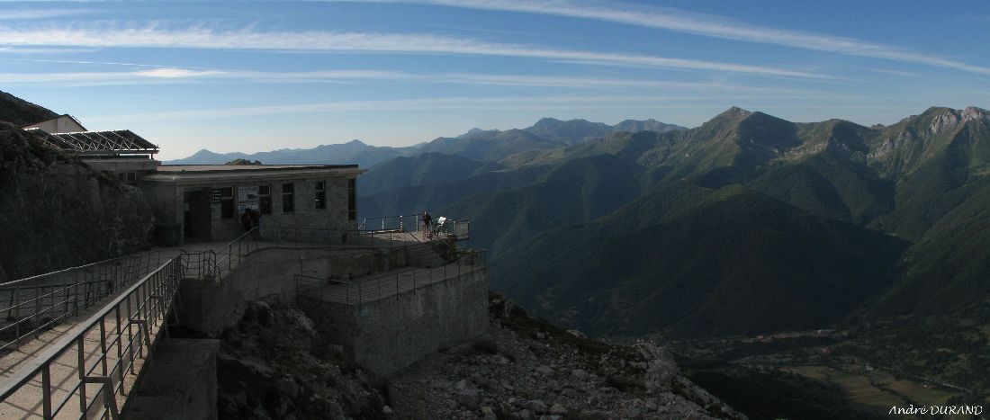 Zoom depuis la gare supérieure, le parador de Fuente Dé, les parkings.