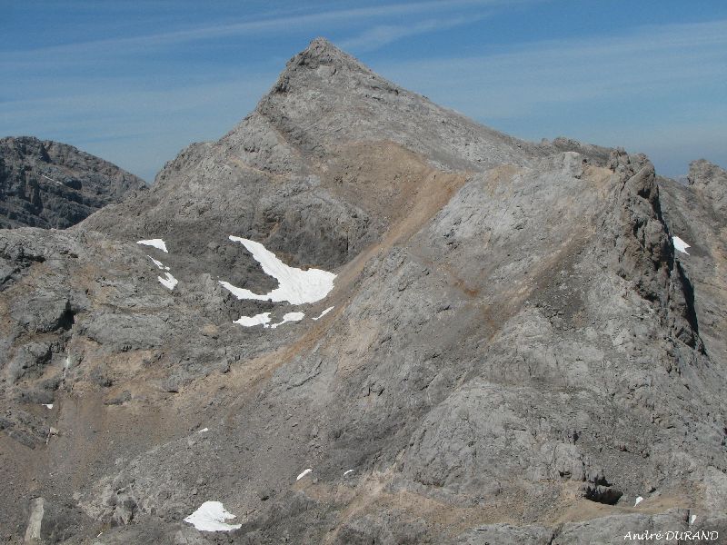 A l'ouest, le pico Tesorero avec le col des Horcados Rojos (Cliquer sur la photo pour retirer la légende)