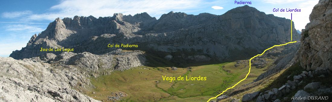 A l'approche du col de Remoña, on peut admirer dans sa globalité la crête de la Padierna avec son pic à droite, au dessus du col de Liordes. (Cliquer sur la photo pour retirer la légende)