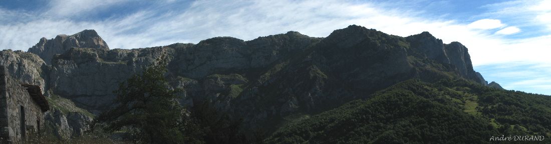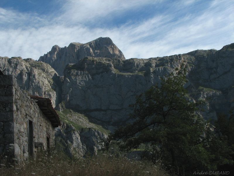 Le chemin du retour parcourt le pied des falaises de la Peņa de Remoņa au dessus de la cabane en ruine.