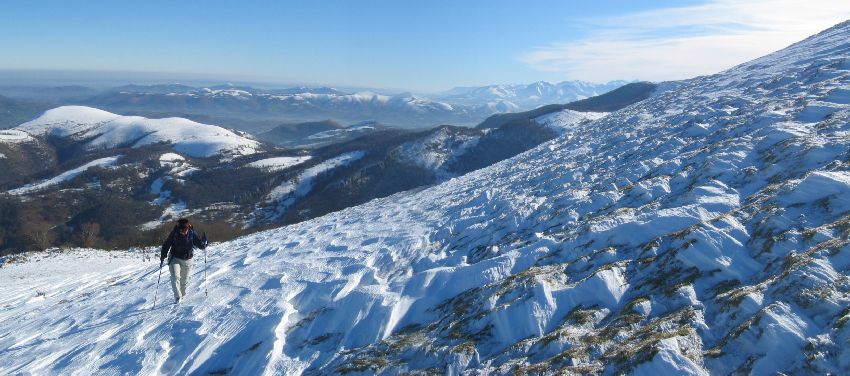Le Belchou , Altitude modeste 1129m, mais qui a l'allure d'un grand aujourd'hui avec un vent de 45km/h.