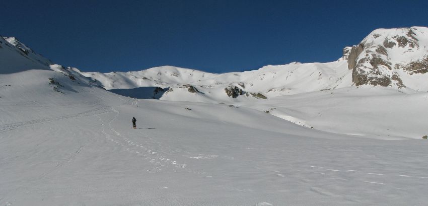 Ce dimanche est annoncé beau avec vent en altitude. Il a neigé dans la semaine et plus en altitude. La route est une patinoire dans les dernier kilomètre, mais à 8h30 à pied d'oeuvre au parking d'Anéou. Départ à 8h40 pour le pic de Canaourouye 2347m qui est atteint sans difficulté vers 10h45 mais à l'aide des couteaux sur la crête. Dur ! Dur la neige ! Vent de 55km/h. Dans la descente, neige changeante, en haut : cartonnée, au milieu : printemps, en bas : soupe), retour pour 11h45 au parking, puis un petit tour en Espagne pour terminer la matinée.