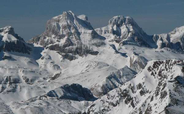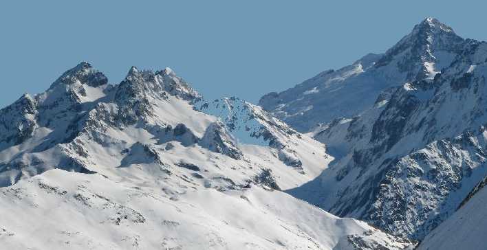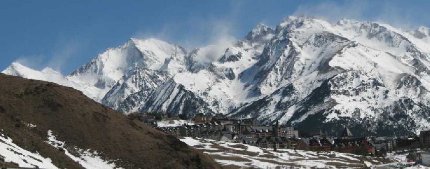 Formigal dominé par les pics d'Enfer, Carmo Negro, ... avec les fumeroles de neige dues au vent